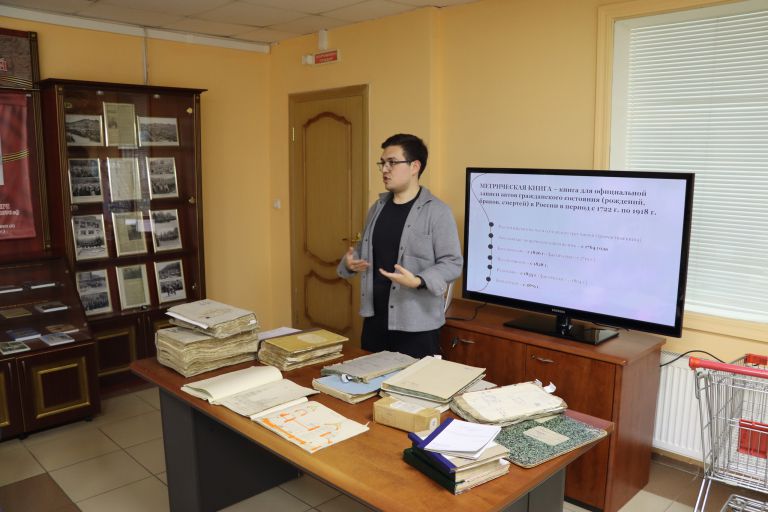 Мероприятие провел старший научный сотрудник отдела НИРиИО А.Р. Конищев. В ходе экскурсии студенты познакомились с историей госархива, со спецификой его работы, а также с имеющими на хранении документами.